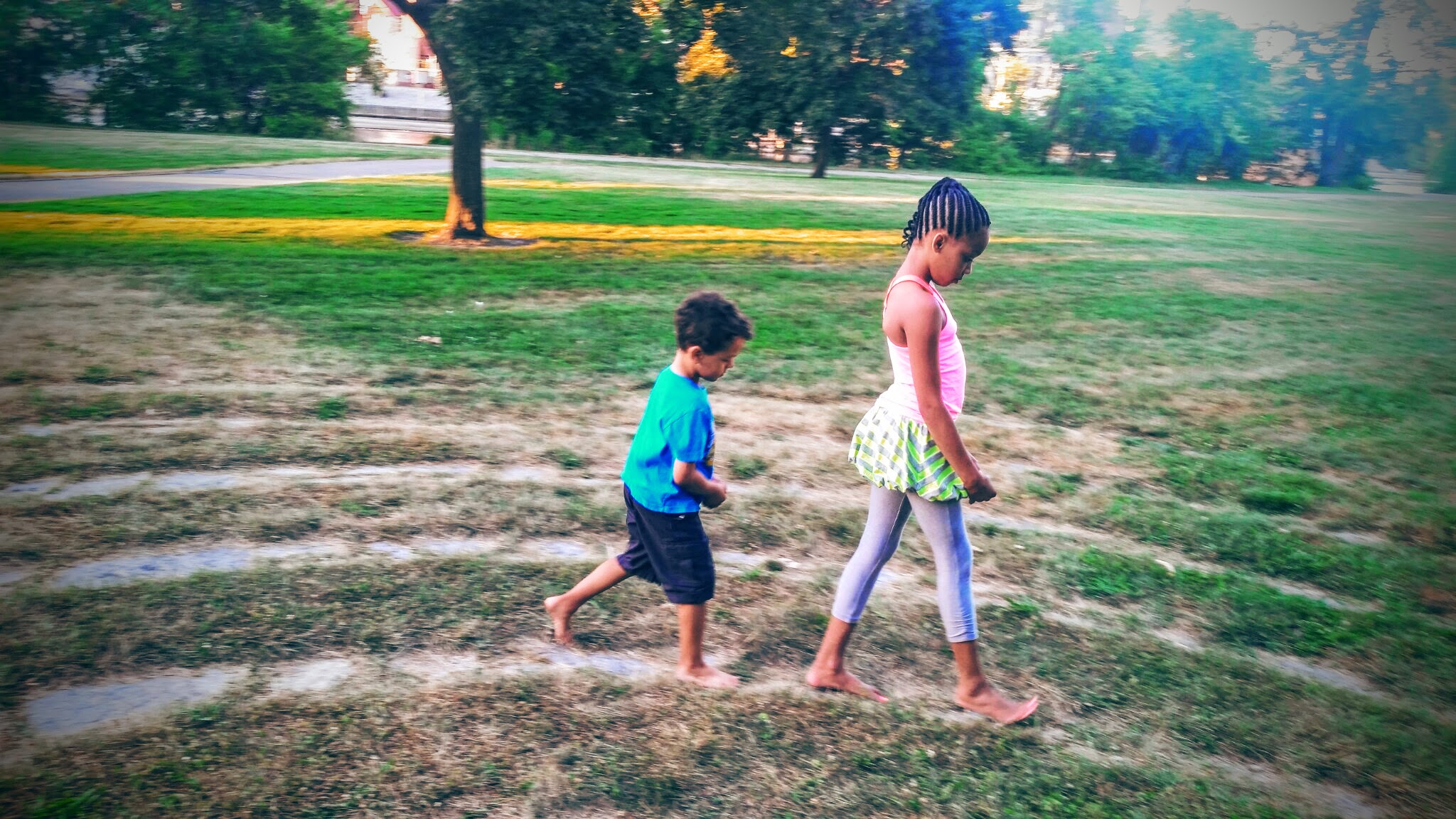 kiddos walk the labyrinth
